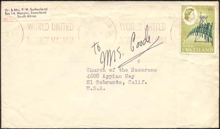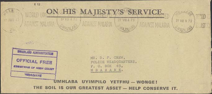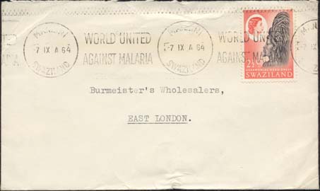 Malaria Slogan Cancellations - Mbabane w/ Official Free Marking