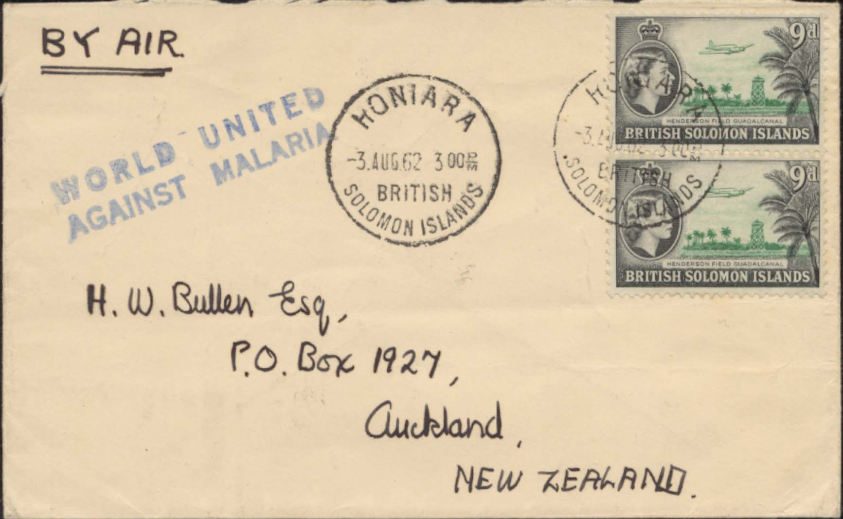 (From: Honiara, BSIP)(To: Aukland, Australia)(Date: Aug 3, 1962) ![]() |