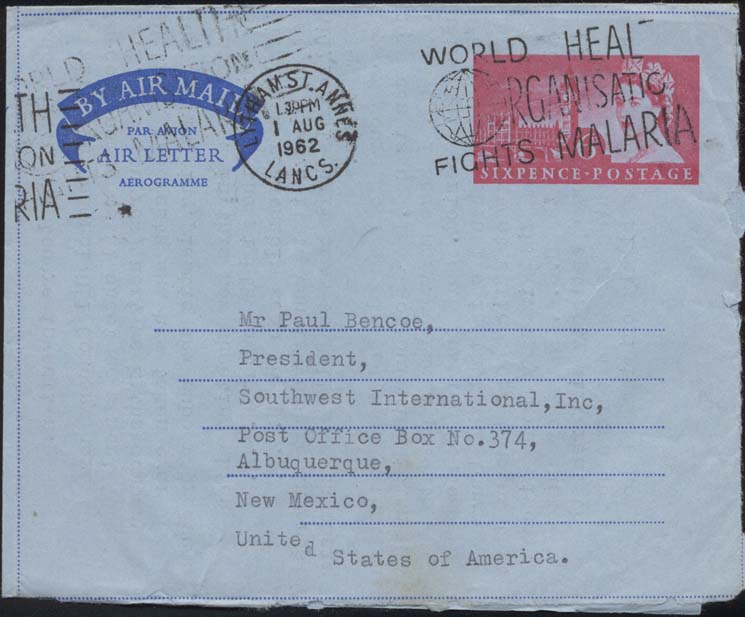Malaria Cancel (Lytham StAnnes Lancs - Aug 1 1962)