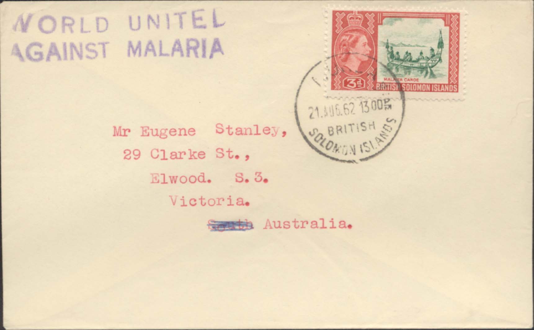 (From: Munda BSIP)(To: Victoria, Australia)(Date: Aug 21, 1962) ![]() |