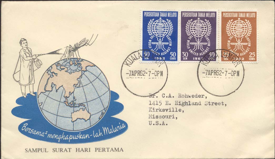 Scott 102-104 (FDC w/ Person Spraying Mosquito On Globe (KualaLumpur))