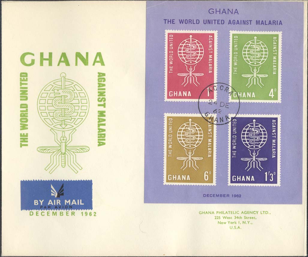 Scott 131A (FDC w/ Large Green Malaria Symbol)(December 24, 1962)(Accra)