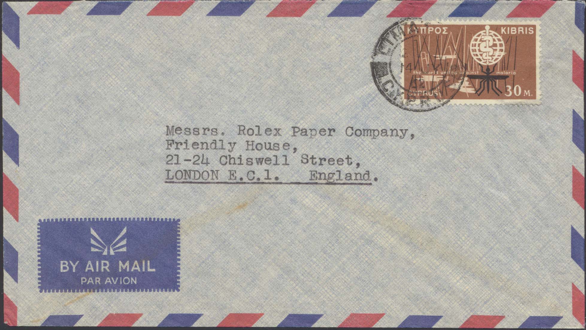 Scott 205 (On Cover (From: Limassol) (To: London, England)(Date: July 14, 1962))