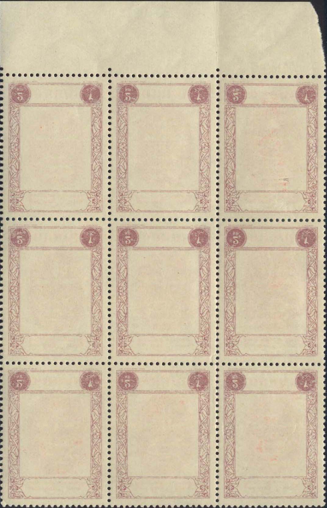 Scott 25 (Block of 9) w/ offset of ink on the reverse (frame only).