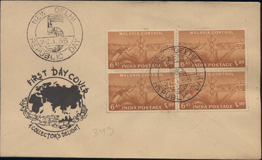 Scott 261 (Block of 4 on FDC w/ Collectors Delight (New Delhi))
