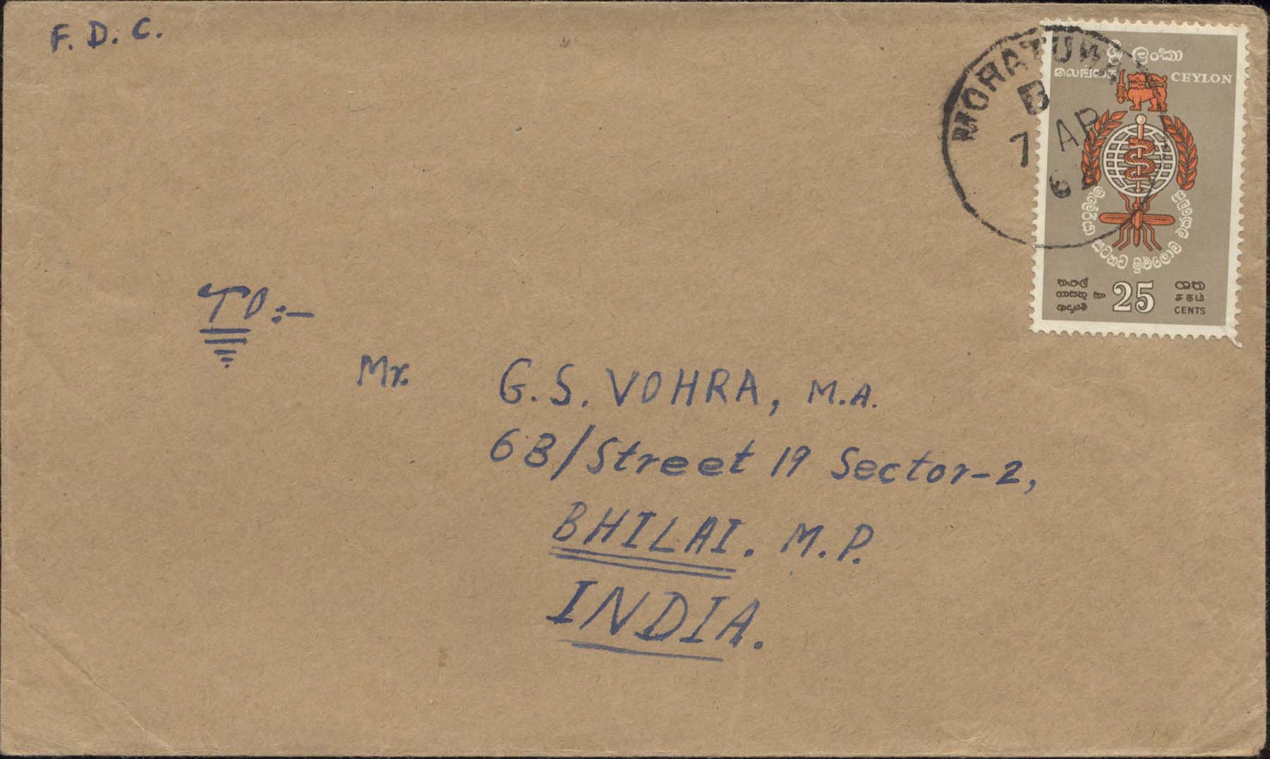 Scott 364 (FDC w/ No Cachet on Brown Envelope (Moratuwa Cancel)(Addressed))