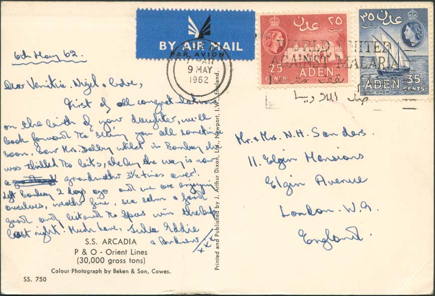Scott 51-52 (On Cover w/ Malaria Slogan Cancellation (May 9th 1962))