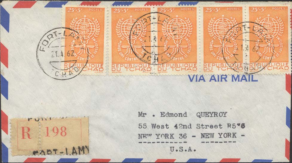Scott B1(On Cover (From: Fort Lamy)(To: New York)(Date: April 21, 1962))