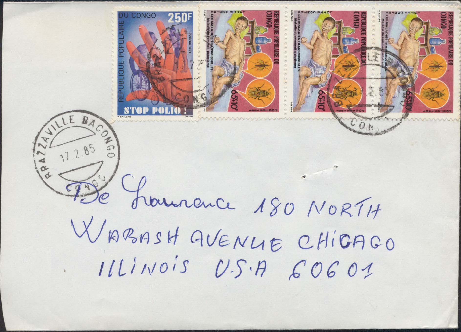 Scott B6 (On Cover (From: Brazzaville Bacongo) (To: Illinois)(Date: February 17, 1985))