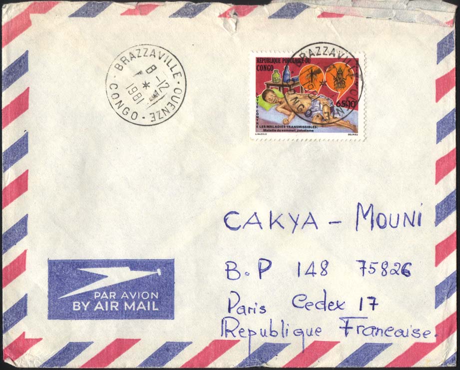 Scott B6 (On Cover (From: Brazzaville Ouenze) (To: Paris)(Date: December 8, 1981))