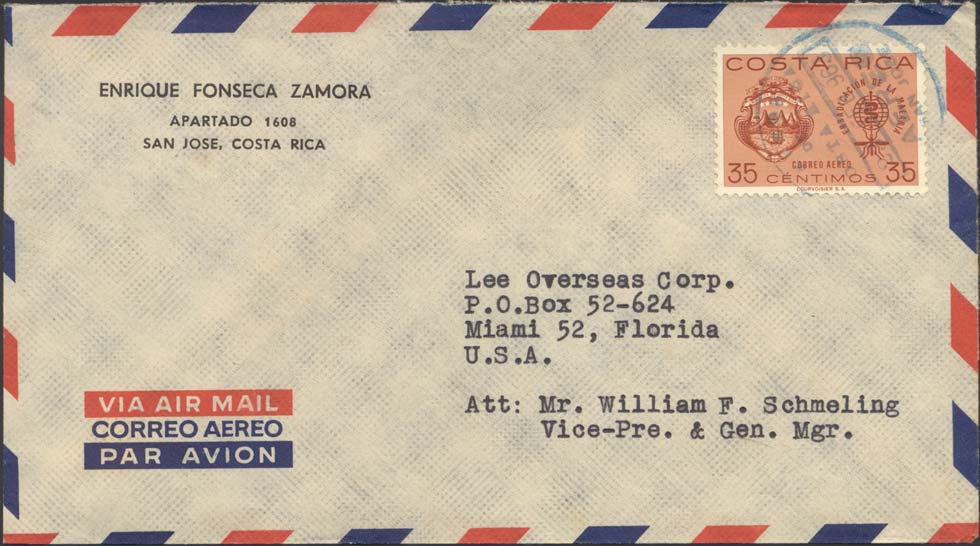 Scott C346 (On Cover (From: San Jose, Costa Rica)(To: Miama, FL, USA)(Date: February 23, 1963))