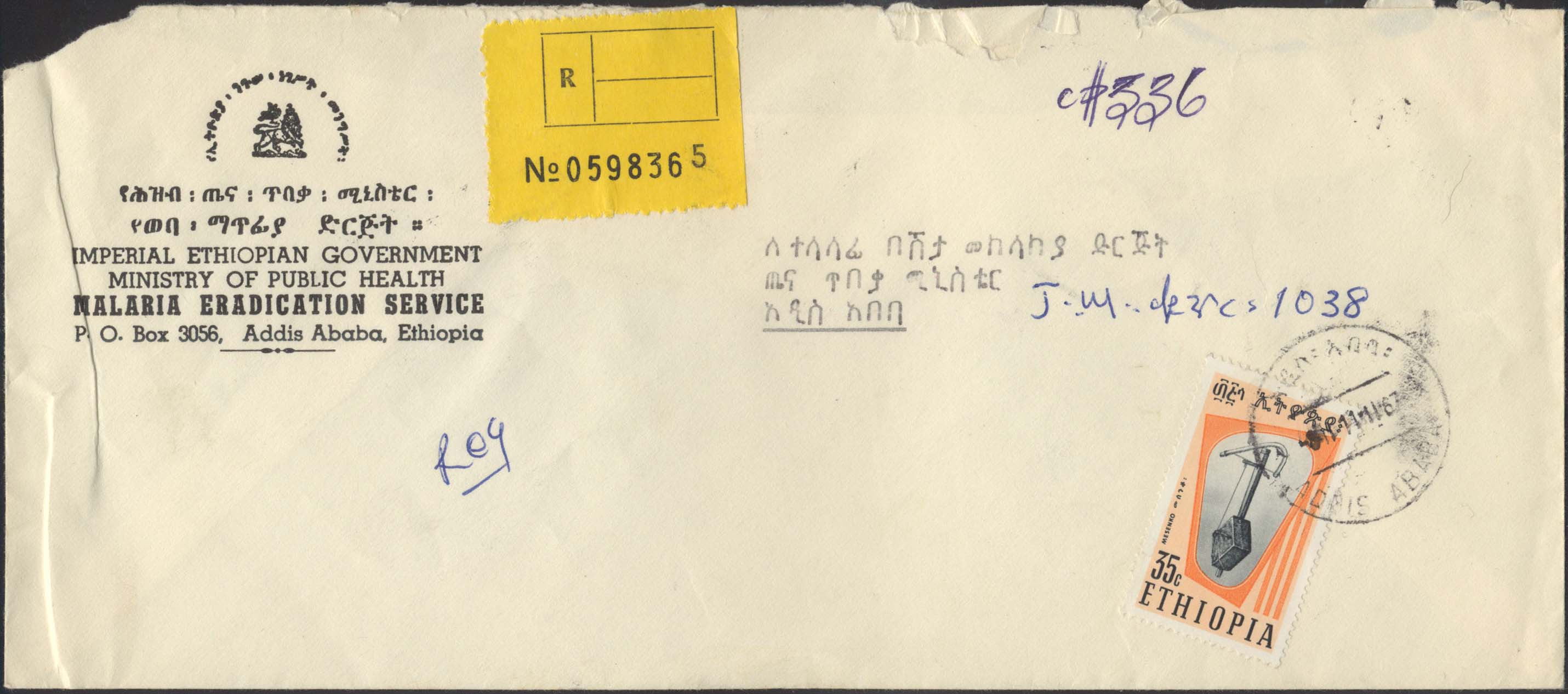 (Scott 460) Cover with Return Address: "Malaria Eradication Service"