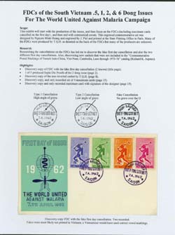 FDCs of the South Vietnam .5, 1, 2, & 6 Dong Issues For The World United Against Malaria Campaign - Larry Fillion