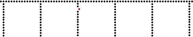 The red dot in the image above in between the 2nd and 3rd stamp is the wandering perforation. This was caused by a pin that was misaligned and after the paper is moved into position for the second row to be perforated, the wandering perforation continues down the row.