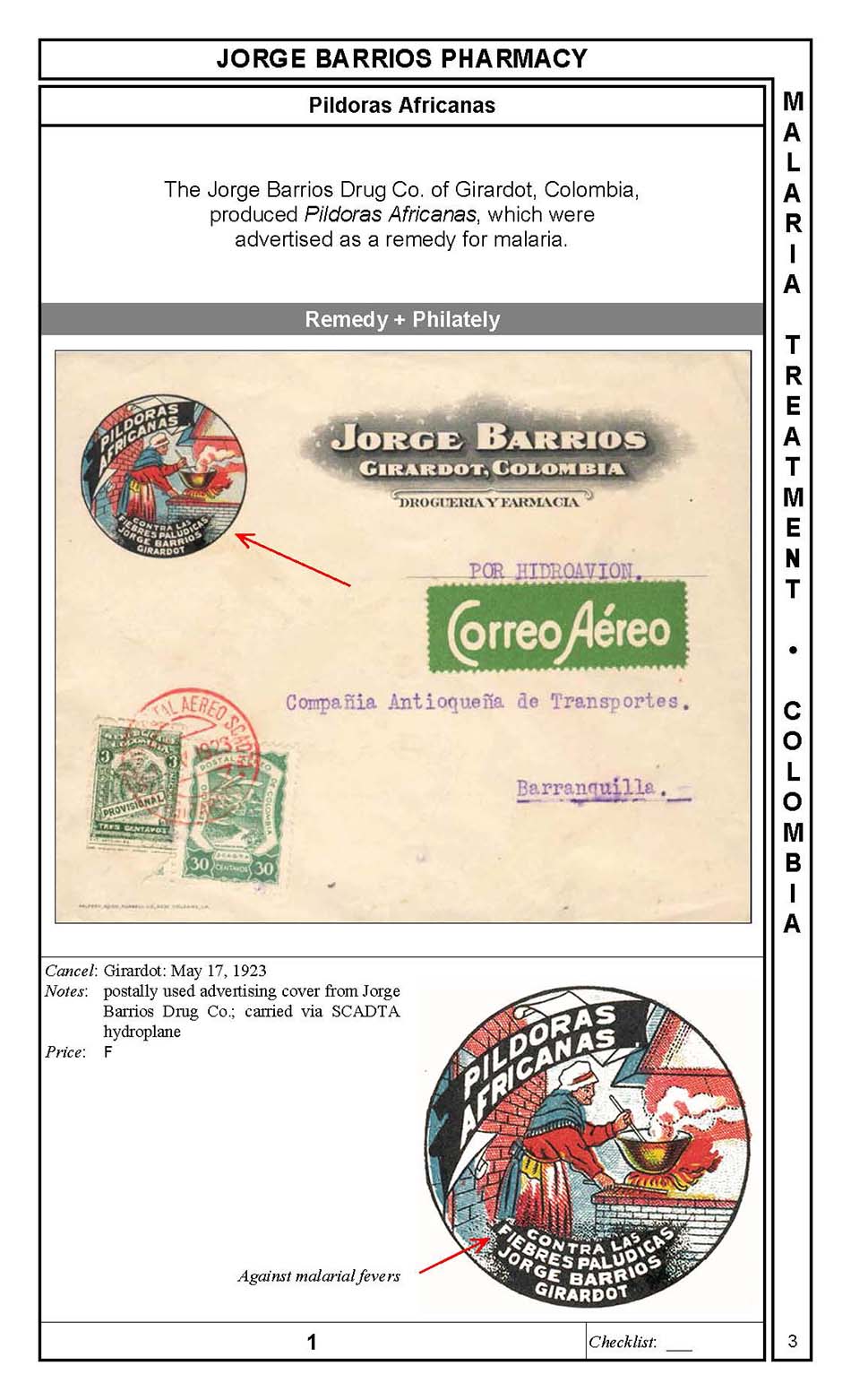 The addendum will show covers, stamps, and advertising media that make remedy-philately connections for malaria treatments from producers around the world.